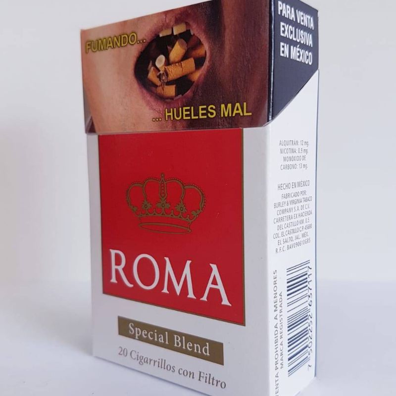 Cigarro Roma sabor que perdura. presentación Rojo y blanco Caja con 50 paquetes.
